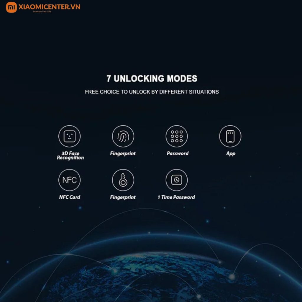 4. Khóa Lockin S50F với 7 phương thức mở khóa cao cấp Không chỉ dừng lại ở việc cung cấp tính năng vân tay, Khóa Lockin S50F còn tích hợp 7 phương thức mở khóa cao cấp khác nhau nhận diện khuôn mặt, vân tay, mã PIN, chìa khóa cơ, thẻ từ đến ứng dụng điện thoại thông minh. tạo mã số 1 lần từ xa. Điều này giúp bạn linh hoạt trong việc chọn cách mở cửa phù hợp với tình huống cụ thể, tạo sự thuận tiện và an toàn tối đa.
