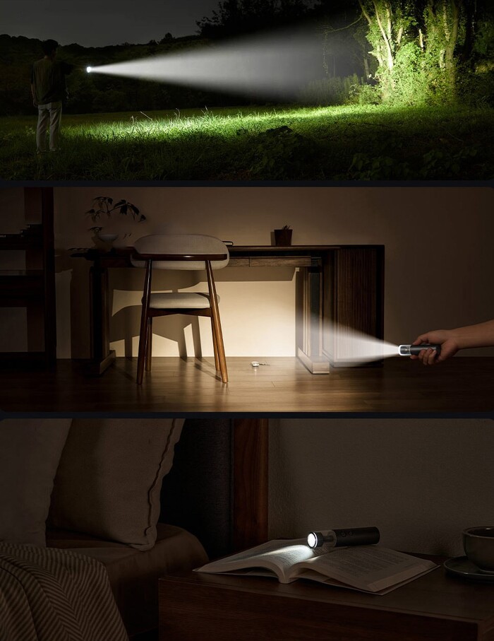 Độ sáng 1000 lumen của đèn pin Xiaomi không chỉ là một con số ấn tượng mà còn mang lại khả năng chiếu sáng mạnh mẽ, vượt trội so với nhiều loại đèn pin thông thường. Từ đó, bạn sẽ có một nguồn sáng cực kỳ mạnh, đủ để chiếu sáng rõ ràng cả một căn phòng nhỏ hoặc khu vực cắm trại rộng lớn.