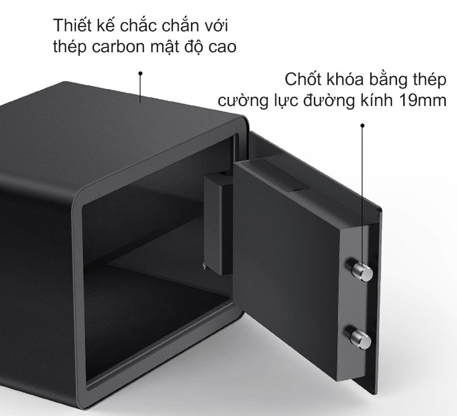 Sở hữu thiết kế chắc chắn với thép carbon mật độ cao, két sắt vân tay Mijia BGX-5/X1-303 được đúc rèn nguyên khối, mang lại độ bền vượt trội. Bề mặt xử lý phun nhựa chống ăn mòn, giúp két luôn bền đẹp theo thời gian. Hệ thống chốt khóa bằng thép cường lực đường kính 19mm, gia công CNC chính xác, đảm bảo khả năng chống cạy phá tối ưu. Công nghệ cắt laser micro-slit giúp khung cửa và bảng điều khiển liền mạch, khe hở nhỏ, tăng tính thẩm mỹ và bảo mật.