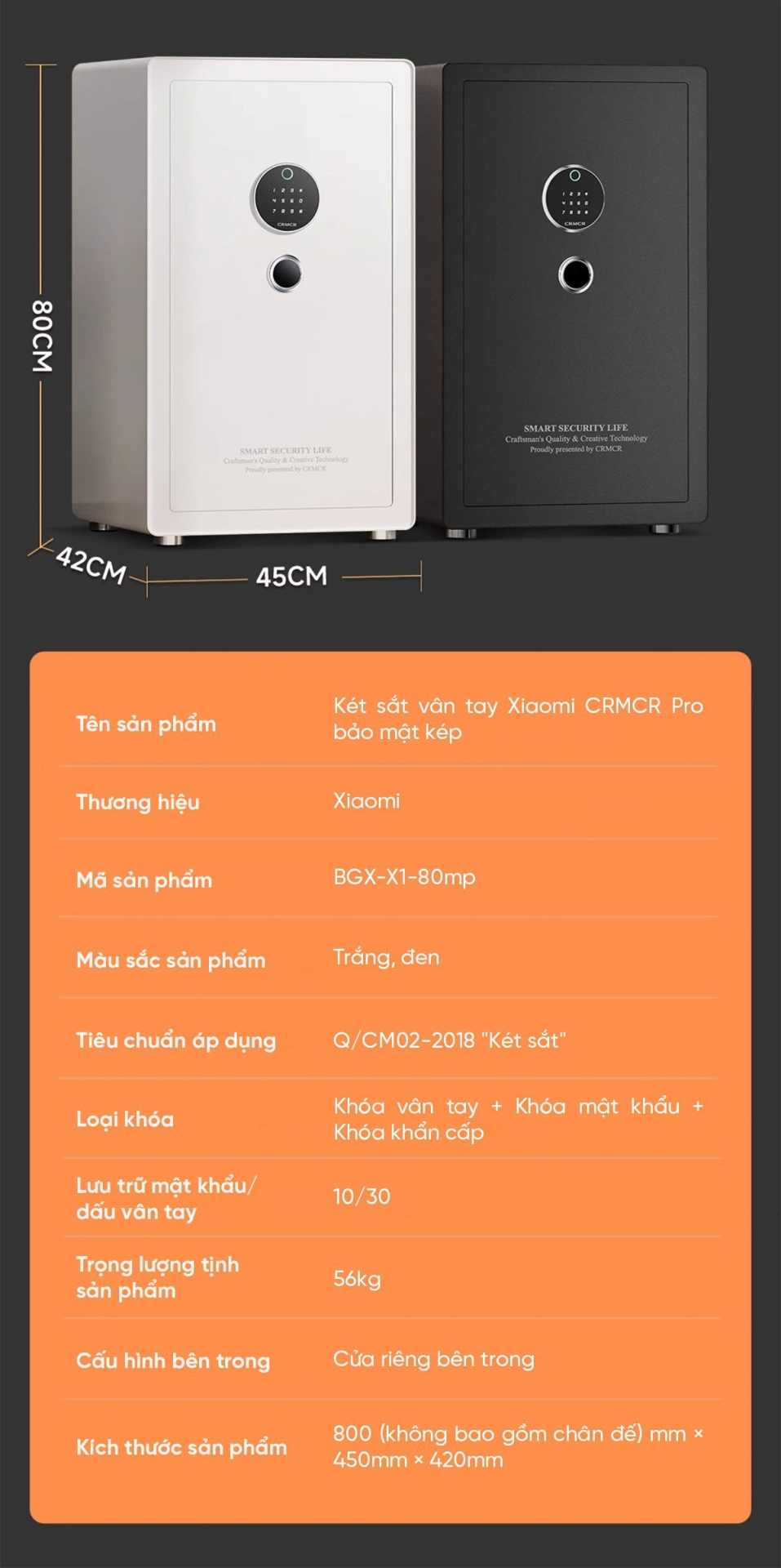 Nếu bạn đang tìm kiếm một "pháo đài" thực sự để bảo vệ tài sản quý giá nhưng vẫn phải tinh tế và hiện đại, Két sắt Xiaomi BGX-X1-80MP (Dòng CRMCR Pro) chính là sự lựa chọn không thể bỏ qua. Với chiều cao lên tới 80cm và khối lượng 56kg, đây là phiên bản nâng cấp hoàn hảo về cả kích thước lẫn khả năng bảo mật của két sắt xiaomi .