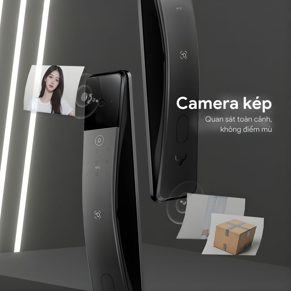 Một điểm nổi bật khác của Lockin S6 Max được trang bị hệ thống camera kép (một ở phía trên và một ở phía dưới thân khóa) giúp bạn quan sát toàn cảnh, từ khuôn mặt người lớn đến trẻ em hay các bưu kiện để dưới sàn.