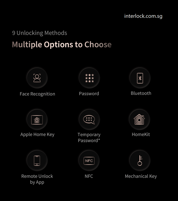 - Nhận diện khuôn mặt 3D an toàn + mã pin, thẻ NFC, App Aqara, chìa khóa cơ + Apple Homekit/Home Key/Siri, Google Home.