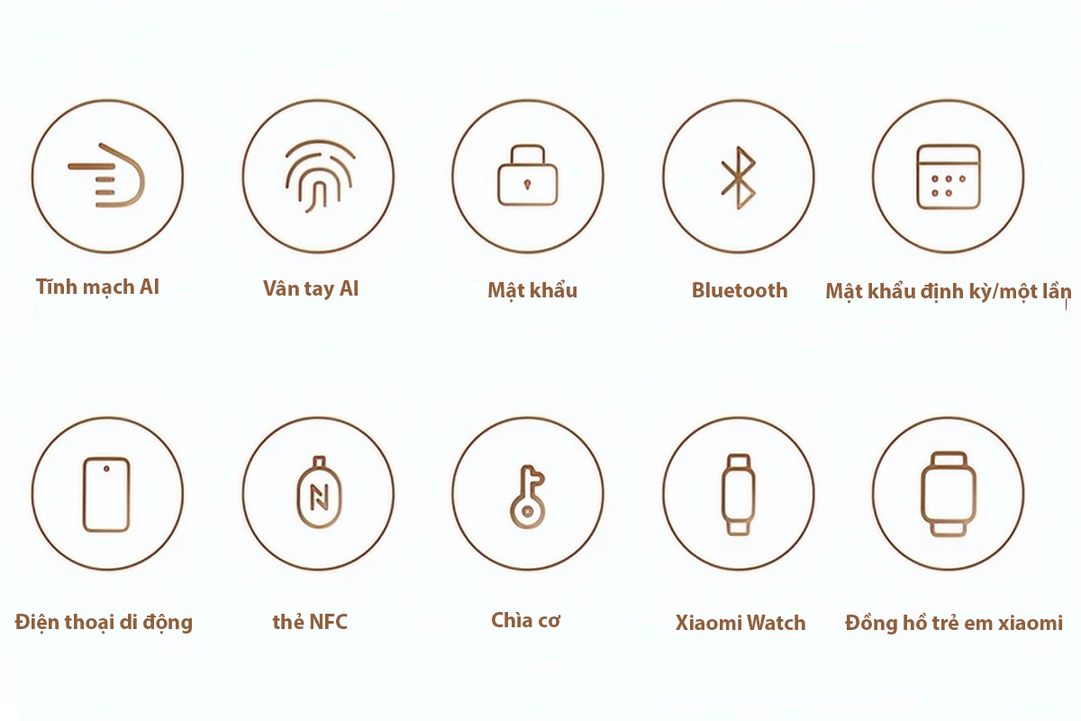 Khóa cửa vân tay xiaomi 2 Finger về phương pháp mở khóa, về cơ bản sản phẩm vẫn giữ nguyên cấu hình như Xiaomi Smart Door Lock 2, bổ sung thêm tính năng nhận dạng tĩnh mạch ngón tay, nâng số phương pháp mở khóa lên 10 ( Tĩnh mạch ngón tay AI, vân tay AI, mật khẩu, App Bluetooth, mật khẩu định kỳ/một lần, điện thoại di động, thẻ NFC, chìa cơ, Xiaomi Watch, đồng hồ trẻ em xiaomi). Đồng thời, nó hỗ trợ đầy đủ việc mở khóa các thiết bị thông minh Xiaomi NFC.