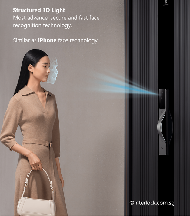 Ngoài nhận dạng tĩnh mạch lòng bàn tay,khóa cửa lockin V5 Max còn được trang bị nhận dạng khuôn mặt 3D bằng ánh sáng có cấu trúc, thu thập thông tin của 30.000 điểm đốm trên khuôn mặt, đo hơn 1.000 thông tin ba chiều của khuôn mặt ở cấp độ milimet và thực hiện mô hình hóa ba chiều để thực sự khôi phục cơ thể con người. Khuôn mặt. Để người dùng có trải nghiệm mở khóa nhà mượt mà và nhanh hơn, Lockin cũng tiên phong trong công nghệ sinh trắc học Multi-Eye™, tích hợp nhận dạng tĩnh mạch lòng bàn tay, nhận dạng khuôn mặt 3D ánh sáng có cấu trúc và phân tích video AI thành một Công nghệ nhận dạng sinh trắc học đa phương thức, phát hiện khuôn mặt và lòng bàn tay được kích hoạt cùng lúc trong mili giây khi tiếp cận khóa cửa 1 mét và tĩnh mạch lòng bàn tay được nhận dạng chính xác ngay lập tức khi đưa tay ra. Phân tích kết hợp AI về thông tin đặc điểm khuôn mặt và tĩnh mạch lòng bàn tay giúp cải thiện thêm tốc độ và độ chính xác của nhận dạng tĩnh mạch lòng bàn tay, cho phép tỷ lệ nhận dạng Gần vô hạn với 100%, chăm sóc thói quen sử dụng và trải nghiệm của mọi người trong gia đình.