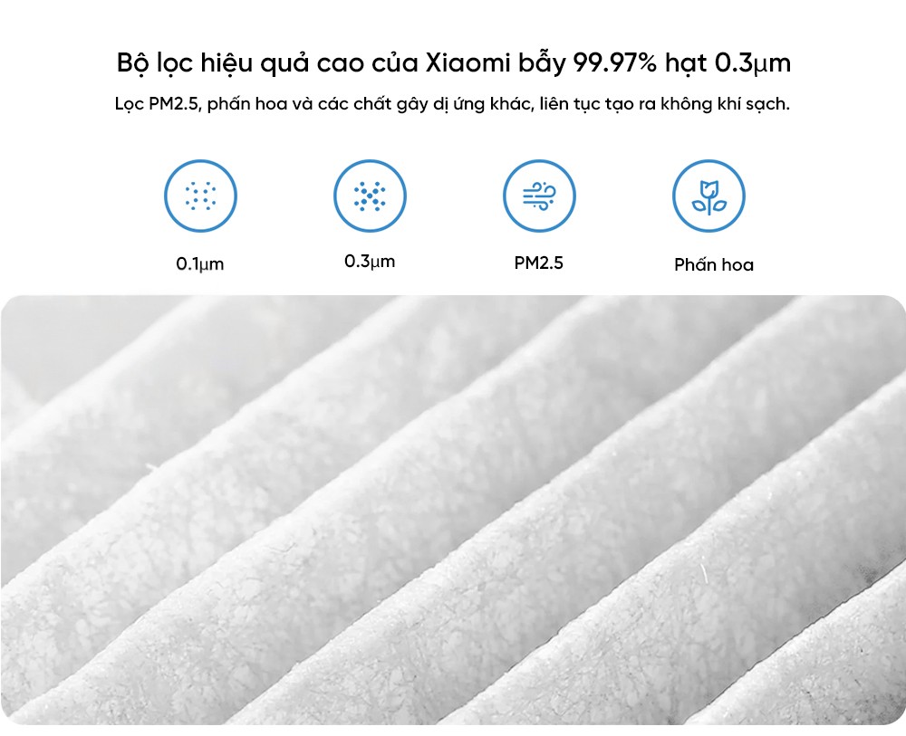 Sở hữu bộ lọc 3 lớp này, sản phẩm sẽ giúp máy đạt hiệu suất cao, loại bỏ hoàn toàn các hạt lớn cho đến nhỏ liti như phấn hoa, lông động vật, mảnh vụn,... một cách dễ dàng. Trung bình, lõi lọc máy có thể lọc sạch không khí liên tục, đánh bật các loại bụi siêu nhỏ, có đường kính từ 0.3μm hay bụi PM2.5 cũng như các chất gây dị ứng khác.