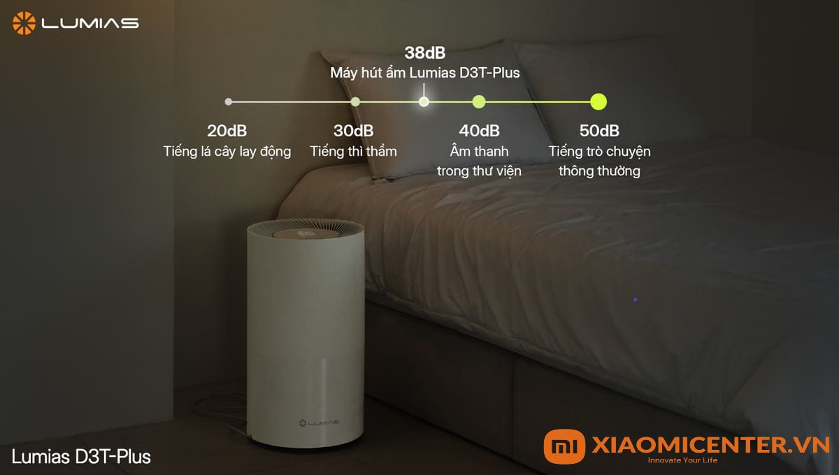 Độ ồn của Lumias D3T-PLUS chỉ 38dB giúp vận hành êm ái trong suốt thời gian sử dụng. Mức âm thanh này tương đương không gian thư viện yên tĩnh, thấp hơn tiếng trò chuyện thông thường khoảng 50dB, không gây khó chịu khi đặt máy trong phòng ngủ hoặc phòng làm việc. Nhờ kiểm soát tiếng ồn hiệu quả, Lumias D3T-PLUS là lựa chọn tối ưu cho gia đình có trẻ nhỏ, người lớn tuổi.