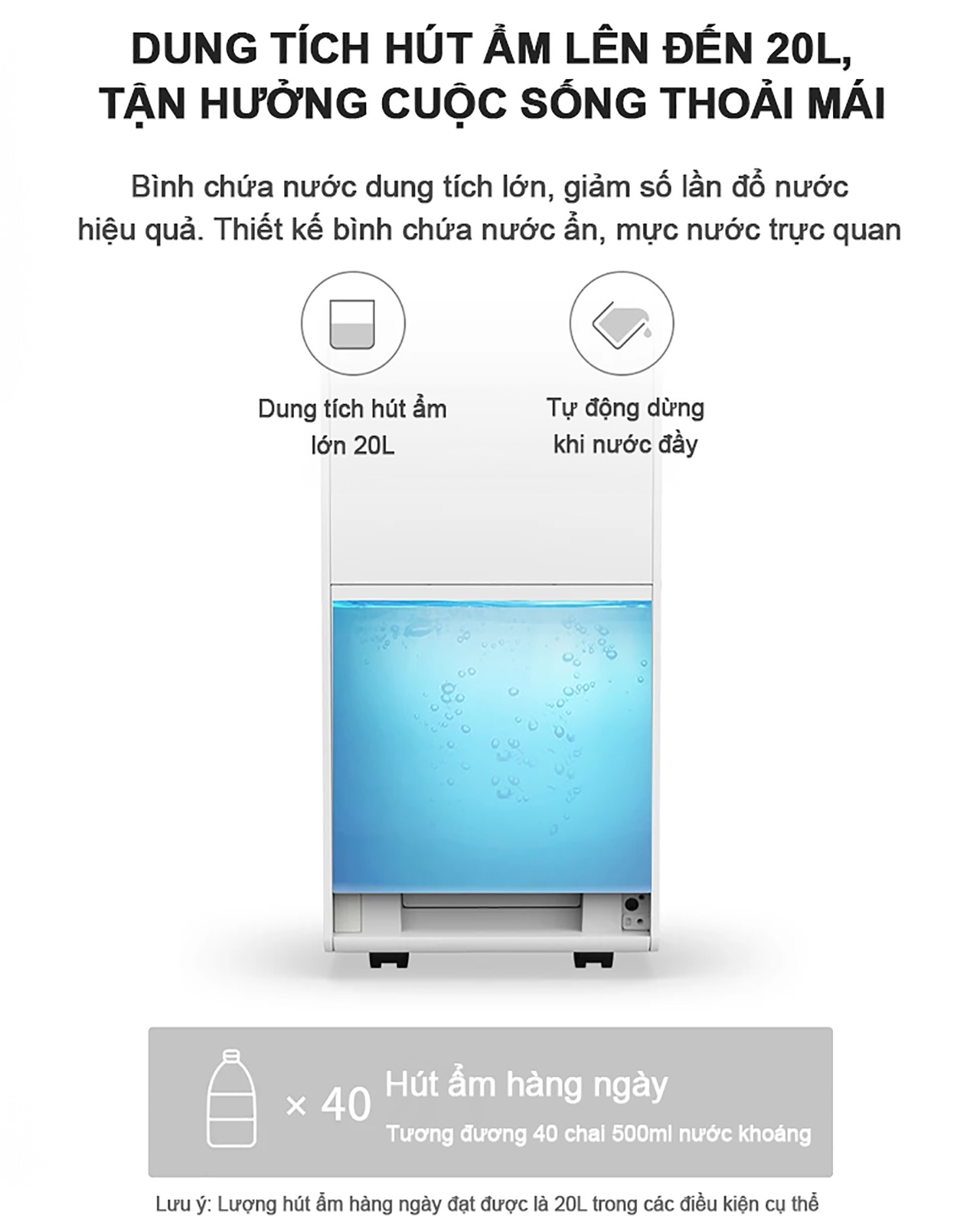 Công suất hút ẩm mạnh mẽ 20L/ngày