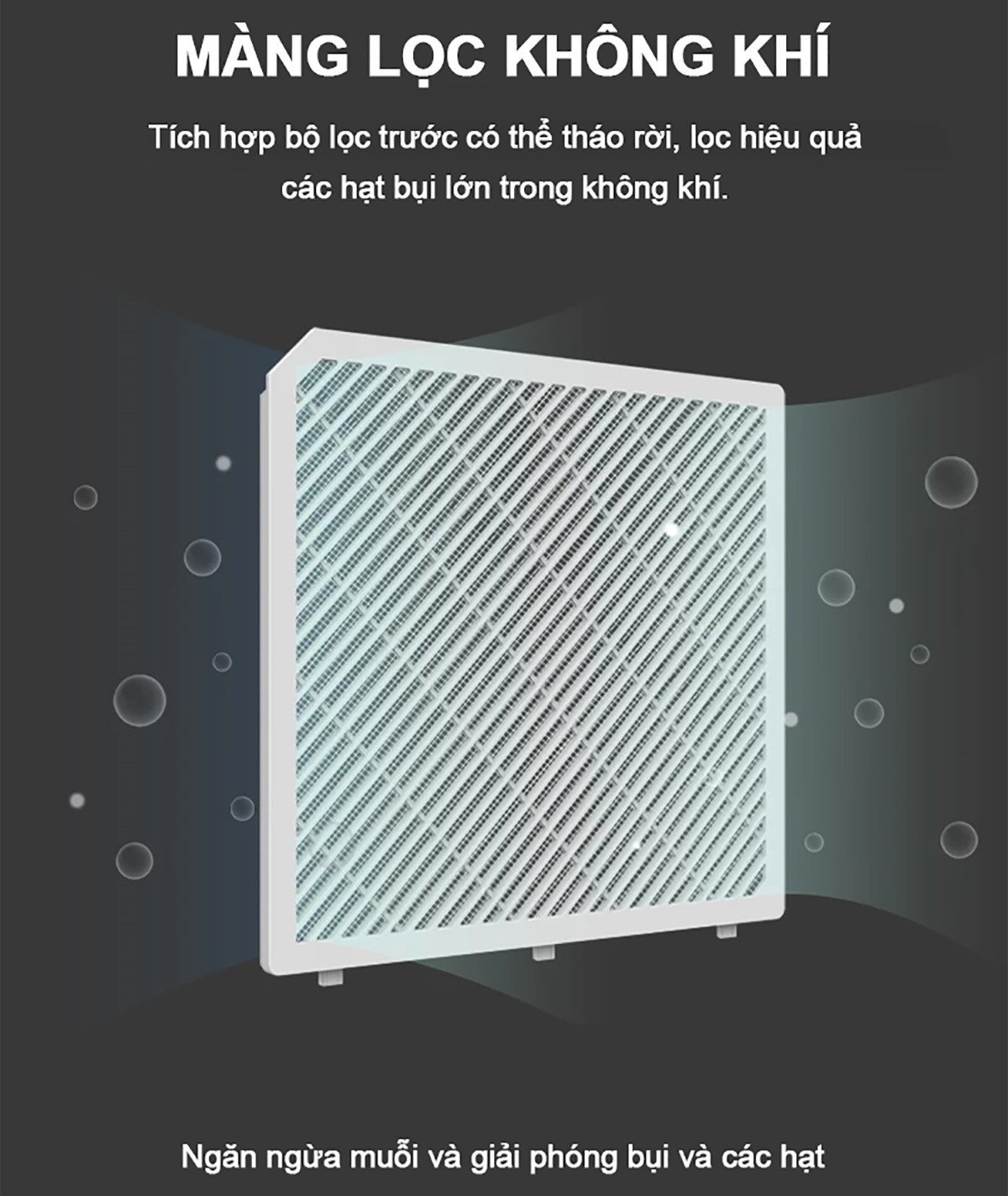 Bên cạnh đó, màng lọc than hoạt tính có tác dụng khử mùi hôi, mùi ẩm mốc và các chất độc hại, giúp không gian trong lành, đem đến sự thoải mái cho người dùng. Màng lọc có thể tháo rời để vệ sinh và thay thế dễ dàng khi cần thiết, đảm bảo thiết bị luôn hoạt động hiệu quả.