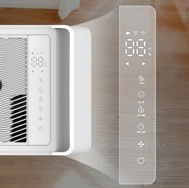 Sản phẩm được trang bị bảng điều khiển cảm ứng với màn hình LED, bạn có thể theo dõi được độ ẩm không khí hiện tại để biết máy có đang hoạt động hiệu quả hay không. Giao diện trực quan, các nút điều khiển thân thiện, chỉ với vài thao tác chạm đơn giản, bạn có thể tùy chỉnh chế độ hoạt động, mức độ ẩm mong muốn cũng như điều chỉnh các thiết lập khác.