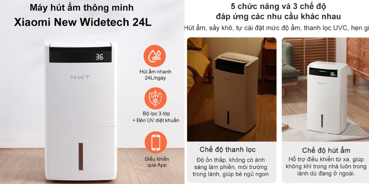 Máy hút ẩm Xiaomi, đặc biệt là dòng máy hút ẩm New Widetech NWT, chính là giải pháp hiệu quả giúp chống ẩm mốc, bảo vệ sức khỏe gia đình và tăng tuổi thọ đồ dùng nội thất. Với giá thành hợp lý, công suất mạnh mẽ và thiết kế tinh tế, đây là sản phẩm xứng đáng có mặt trong mỗi gia đình Việt.