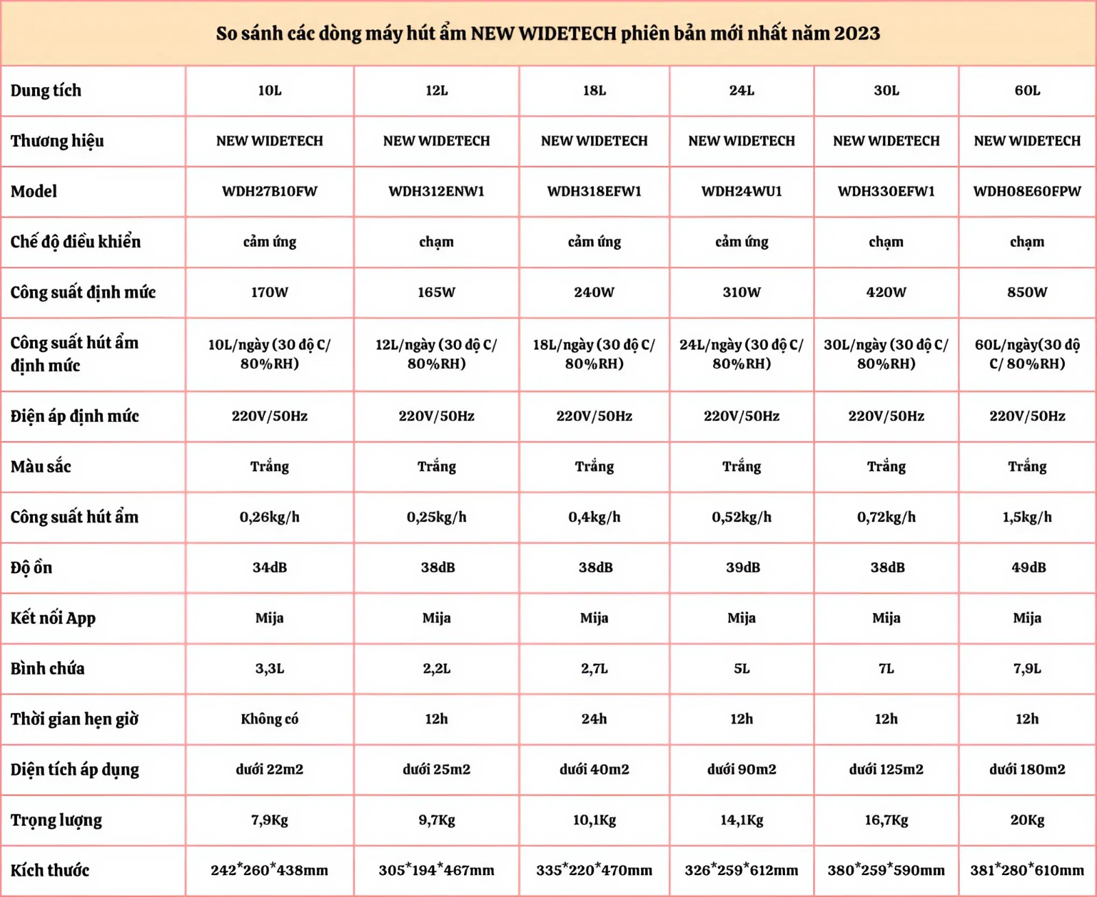 Với thiết kế nhỏ gọn, hiệu suất hút ẩm 10L/ngày, độ ồn thấp và khả năng kết nối thông minh qua ứng dụng, máy hút ẩm Xiaomi New Widetech 10L WDH27B10FW là lựa chọn hoàn hảo để bảo vệ sức khỏe, đồ dùng và không gian sống của gia đình bạn. Đây là sản phẩm đáng cân nhắc cho những ai đang tìm kiếm một chiếc máy hút ẩm vừa tiện lợi, vừa hiện đại, lại tiết kiệm năng lượng.
