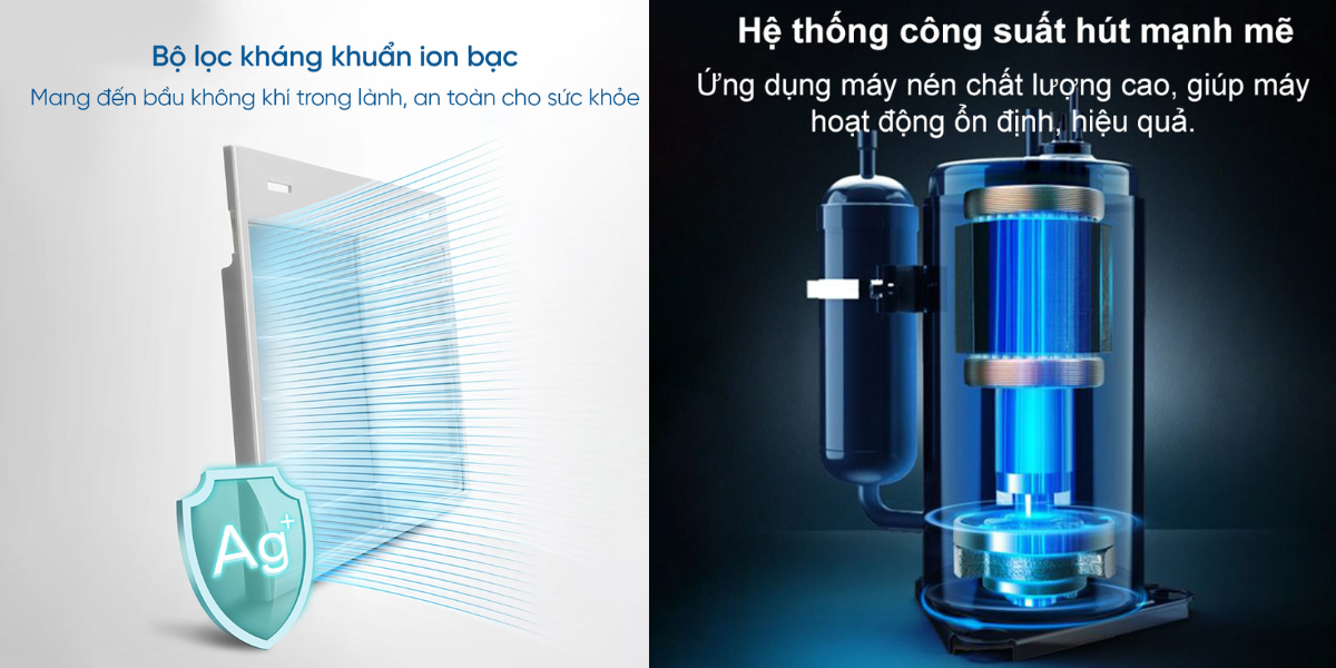 Máy được trang bị công suất định mức 230W, cho khả năng hút ẩm hiệu quả lên tới 16 lít/ngày trong điều kiện 30°C/80%RH. Công suất hút ẩm danh nghĩa đạt 0.4kg/h (27°C/60%RH), đảm bảo độ ẩm luôn được duy trì trong khoảng tối ưu từ 30% – 90%. Với hiệu năng này, thiết bị hoàn toàn phù hợp cho các không gian có diện tích lên đến 35m² như phòng khách, phòng ngủ lớn hoặc văn phòng nhỏ.