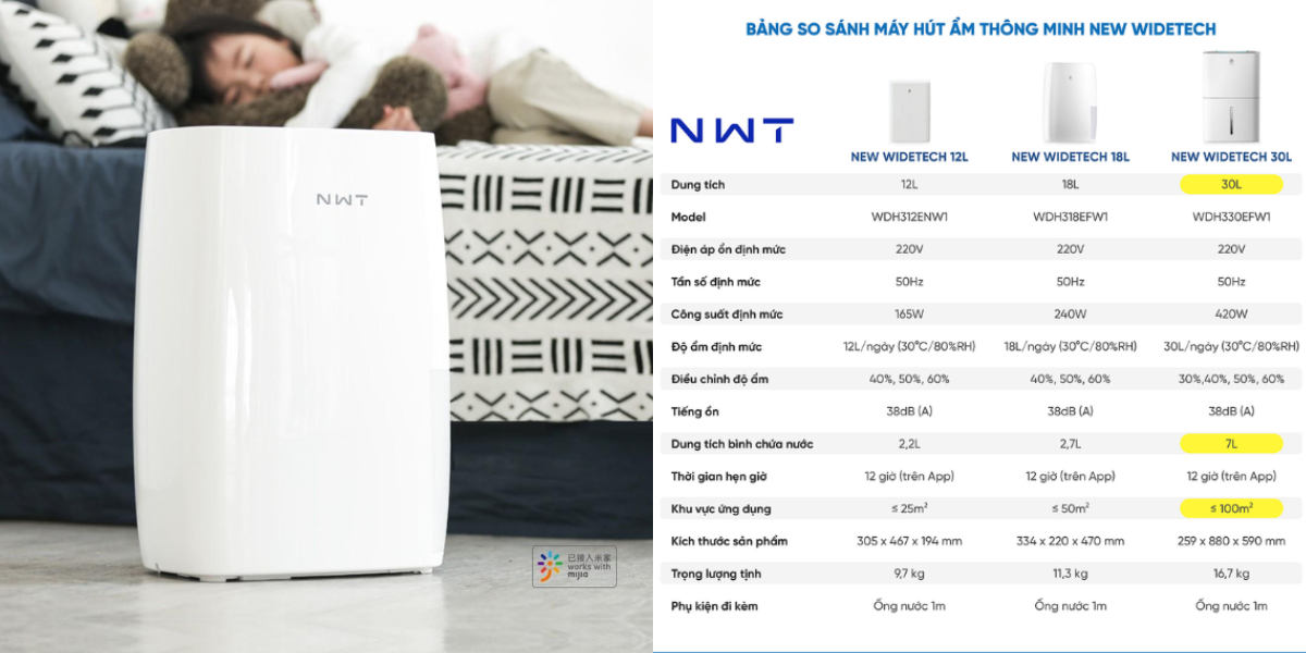 Tên sản phẩm: Máy hút ẩm thông minh New Widetech 18L.