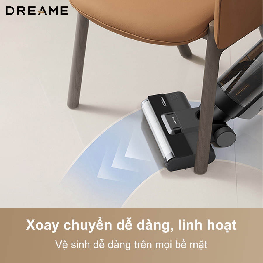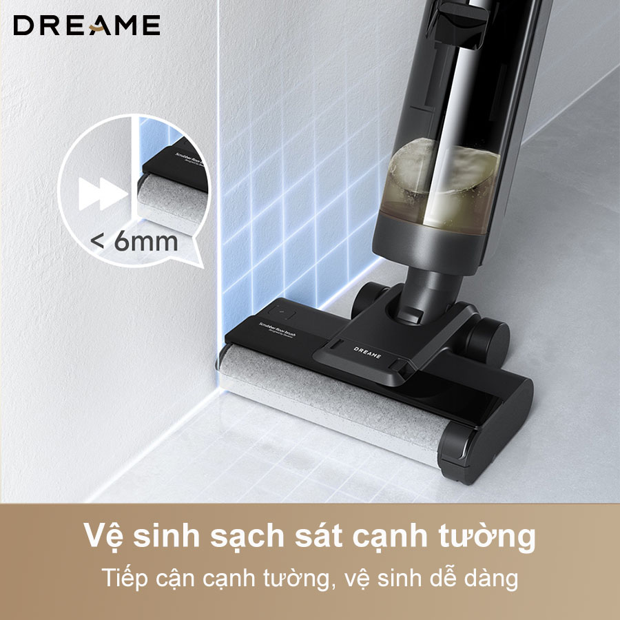Nhờ công nghệ Clean-to-Edge™, đầu cuộn lăn tràn viền của Dreame H12S AE với vật liệu chịu mài mòn, kết hợp Nylon-TPU xoay tới 180 vòng/phút, không chỉ lau sạch mặt sàn mà còn len lỏi sát mép tường và gầm đồ nội thất chỉ cách 6mm. Thiết kế này đảm bảo không khuất góc nào, từ chân bàn ghế đến mép tường, mọi vết bẩn đều được loại bỏ triệt để.