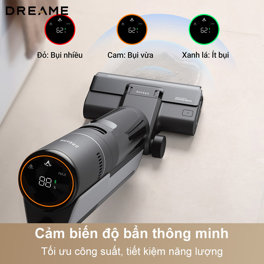 Dreame H12S AE mang đến trải nghiệm lau dọn tối ưu nhờ trang bị cảm biến thông minh có khả năng tự động nhận diện mức độ bụi bẩn trên sàn nhà. Dù là vụn đồ ăn khô hay vết nước loang, thiết bị sự tự điều chỉnh lực hút phù hợp chỉ trong tích tắc.