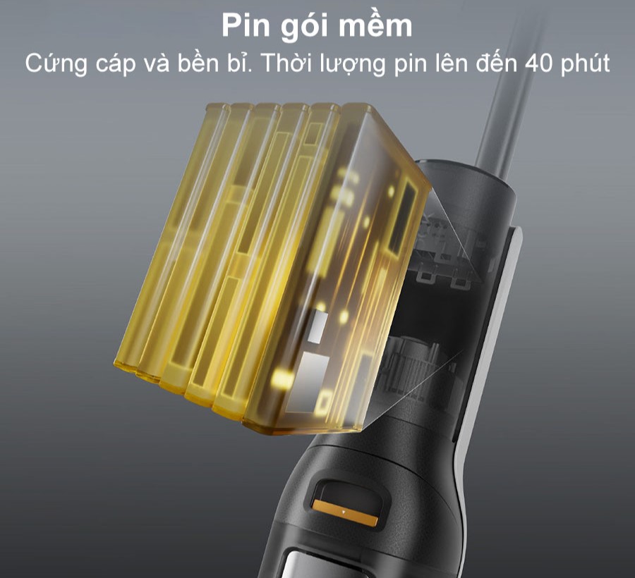 Máy hút bụi lau nhà cầm tay Roborock F25 có thời lượng hoạt động liên tục lên đến 40 phút, đủ để làm sạch toàn bộ không gian rộng lớn chỉ trong một lần sử dụng. Đi kèm với đó là lớp vỏ silicon chống thấm nước và hệ thống kiểm soát nhiệt thông minh, giúp bảo vệ pin khỏi các tác động bên ngoài và nâng cao tuổi thọ sản phẩm. Đây là một thiết bị không chỉ mạnh mẽ mà còn bền bỉ, mang đến giá trị lâu dài cho người dùng.