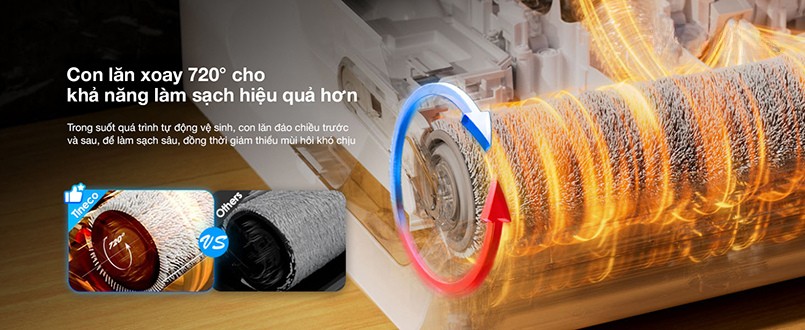 Cụ thể hơn, tất cả các bộ phận này đều được sấy khô ở mức nhiệt độ cao 85°C, trong thời gian khoảng 5 phút. Nhờ có việc sấy khô toàn chuỗi sau khi giặt con lăn, Tineco S6 Stretch Pro mang đến khả năng khử trùng toàn bộ động cơ bên trong hiệu quả, tiêu diệt vi khuẩn, ngăn ngừa mùi hôi và nấm mốc phát triển.