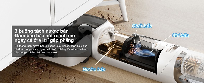 Nhờ có hệ thống 3 buồng tách nước bẩn mới mẻ này, Tineco S6 Stretch Pro có khả năng tách biệt các loại chất thải hiệu quả gấp 5 lần so với các dòng máy trước, đảm bảo an toàn cho động cơ máy và tăng cường độ bền bỉ.