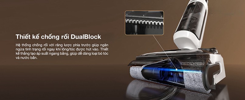 Tineco S6 Stretch Pro xử lý triệt để vấn đề tóc và lông thú cưng bị quấn vào con lăn nhờ hệ thống chống rối DualBlock Anti-Tangle. Với thiết kế răng lược tích hợp, máy có thể tách và loại bỏ tóc ngay lập tức mà không làm ảnh hưởng đến hiệu suất làm sạch.