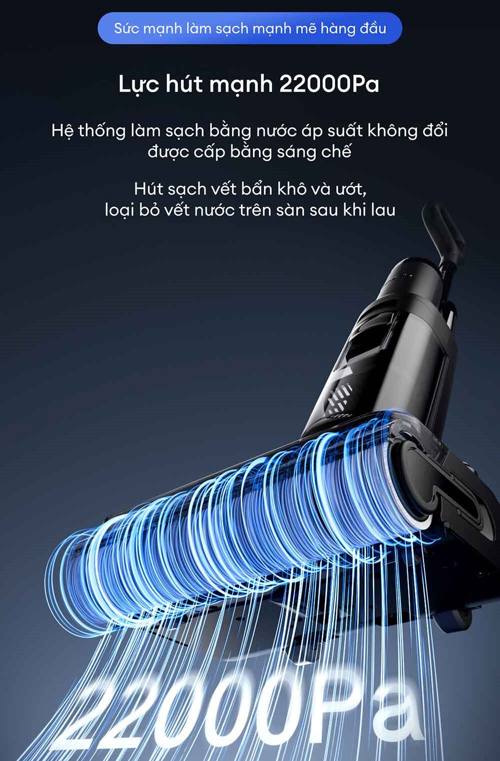 Sức mạnh làm sạch hàng đầu với lực hút 22.000Pa