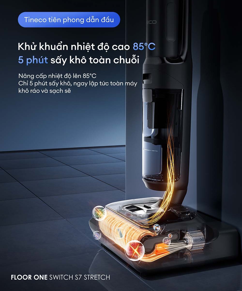 Tineco tiếp tục khẳng định vị thế tiên phong trong ngành công nghệ thiết bị gia dụng với khả năng khử khuẩn bằng nhiệt độ cao 85°C. Đây là tính năng đặc biệt mà không nhiều sản phẩm trong cùng phân khúc sở hữu, mang lại khả năng loại bỏ đến 99,99% vi khuẩn và vi sinh vật gây hại.