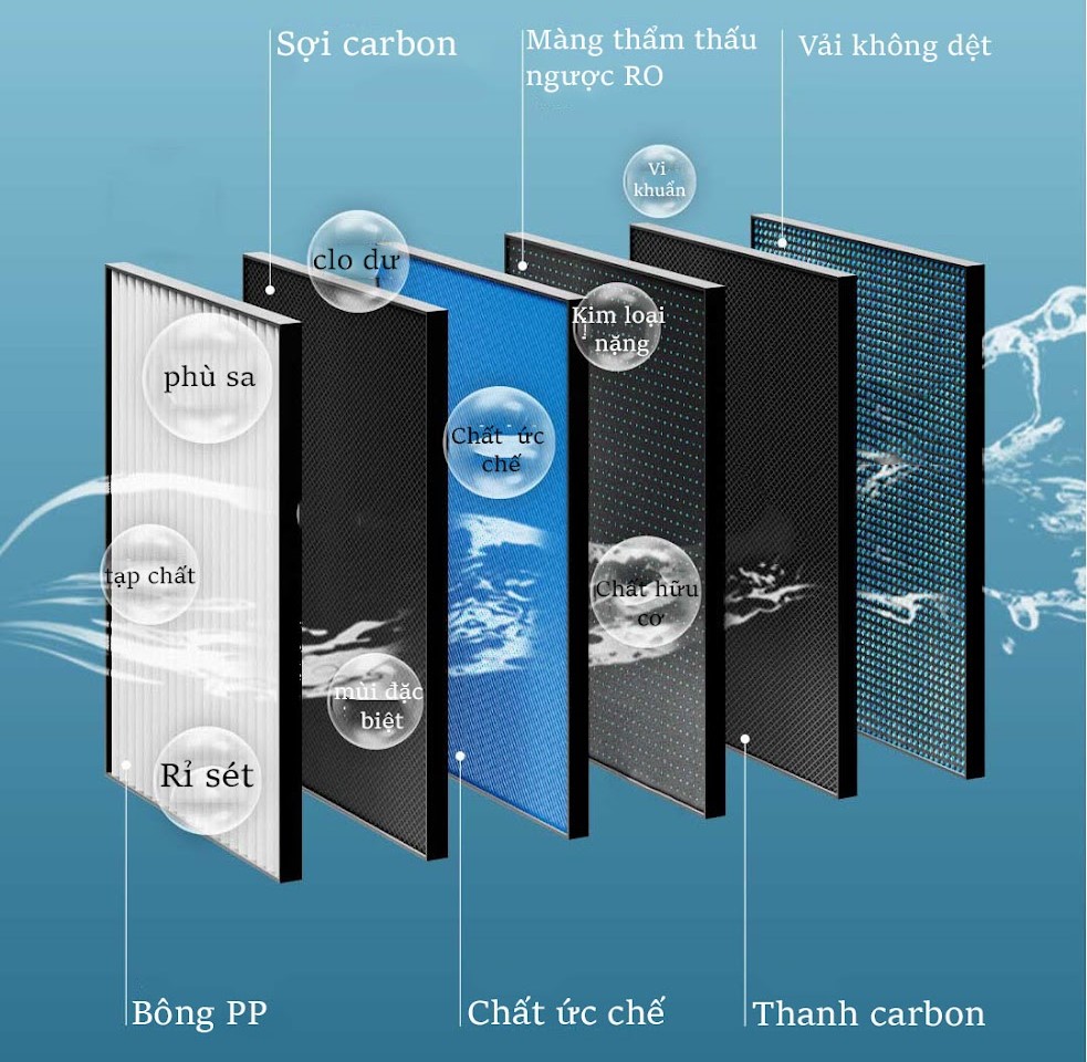 Hệ thống bộ lọc RO 6 lớp, xử lý nước theo cơ chế đa tầng