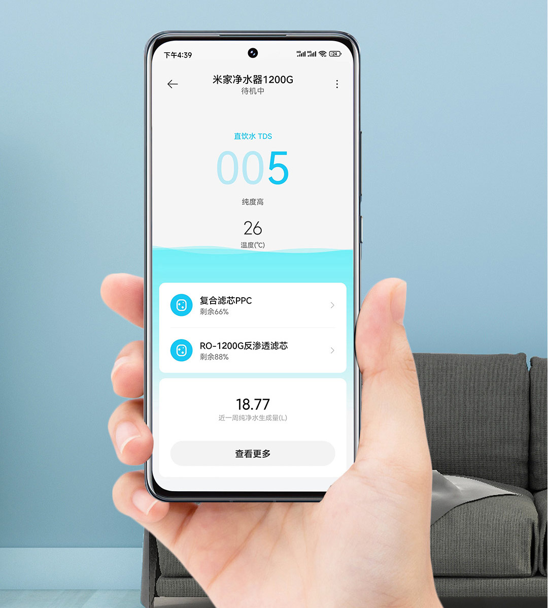 Đồng thời, thiết bị cũng hỗ trợ kết nối và điều khiển qua ứng dụng Mijia. Bạn có thể dễ dàng kiểm tra chất lượng nước bất cứ lúc nào, lượng nước tiêu thụ, theo dõi tuổi thọ của bộ lọc và nhận thông báo tự động khi bộ lọc cần thay thế. Tính năng này giúp bạn quản lý nước uống hiệu quả và thuận tiện hơn.