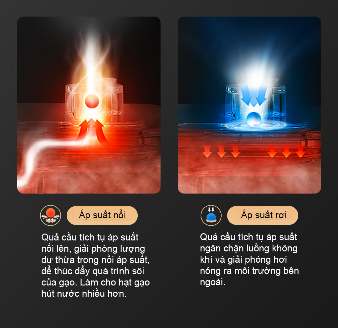 Nồi cơm điện Xiaomi Mijia MFB2BM được trang bị công nghệ bóng tích tụ áp suất với hai quả bóng tích áp nổi và tích áp rơi, nhằm mục đích giúp cho hạt gạo được nấu chín nhanh hơn với mùi thơm nguyên bản, tránh bay hơi các chất dinh dưỡng, giữ được hương vị trọn vẹn nhất. Bên cạnh đó với kỹ thuật nấu vi áp, hạt cơm sẽ giữ được nguyên vẹn chất dinh dưỡng, cơm sẽ dẻo và thơm hơn so với cách hoạt động truyền thống.