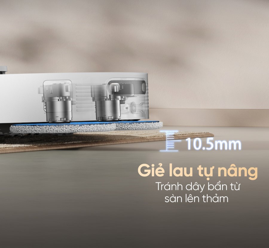 Làm sạch tối ưu với hệ thống tự động nhận diện thảm và nâng giẻ lau