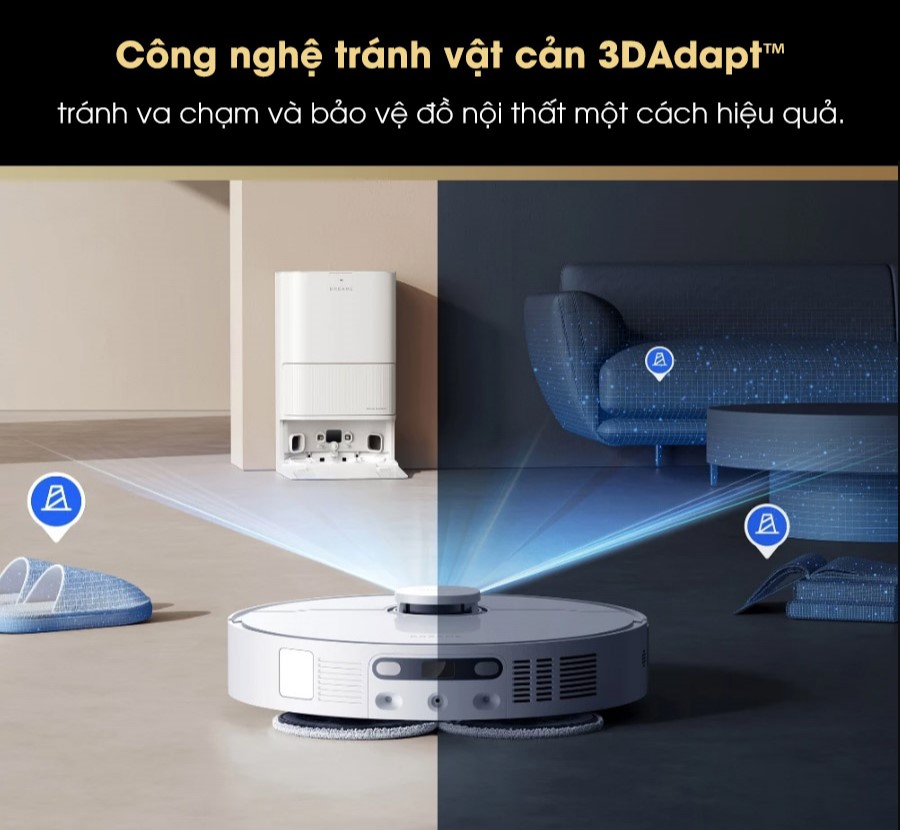 Công nghệ Pathfinder™ cùng cảm biến 3DAdapt™ cho phép robot hút bụi Dreame D20 Ultra lập bản đồ không gian chi tiết và tránh vật cản hiệu quả. Hệ thống cảm biến laser tiên tiến giúp robot quét và tạo bản đồ chính xác từng khu vực, từ đó giúp tối ưu hoá đường đi, hạn chế di chuyển lặp lại và rút ngắn thời gian dọn dẹp. Ngoài ra, tính năng 3DAdapt™ còn cho phép robot nhận diện và phản hồi tức thì với các vật cản như chân bàn, ghế, đồ chơi nhỏ, giúp tránh va chạm và bảo vệ đồ nội thất một cách hiệu quả.