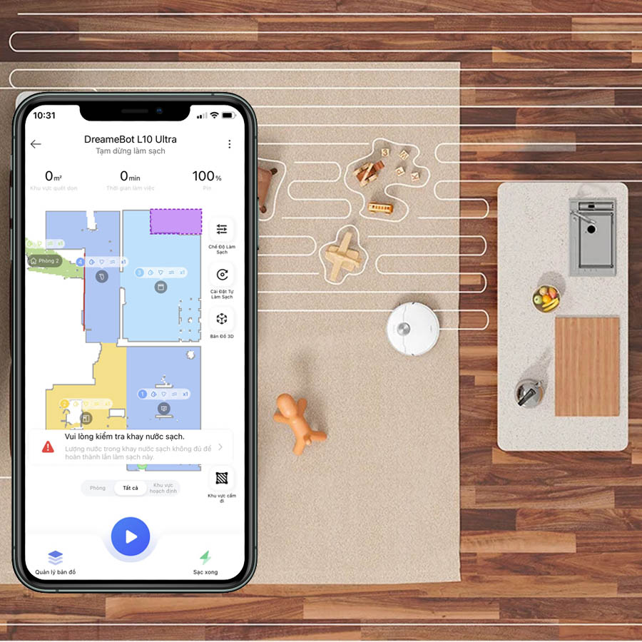 Với App MiHome và DreameHome, bạn có thể điều khiển Dreame L10 Ultra từ xa và thực hiện việc cài đặt các chế độ tự động vô cùng dễ dàng.