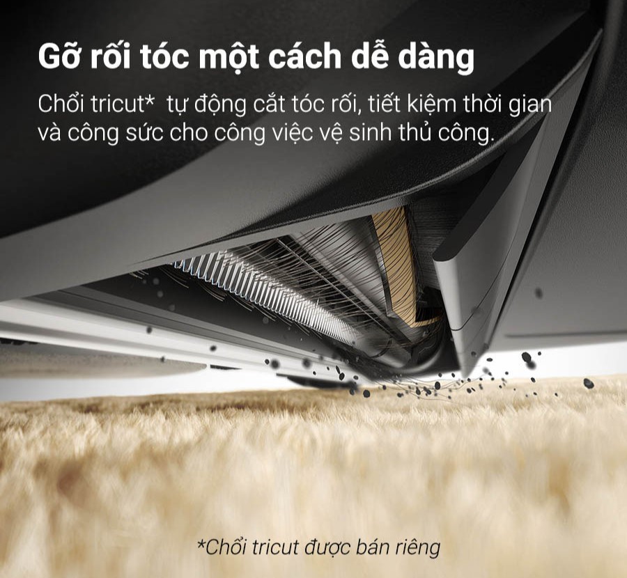 Robot hút bụi lau nhà Dreame L30s Ultra còn được trang bị chổi TriCut, một giải pháp tối ưu để chống rối tóc và lông thú cưng. Với thiết kế động học dạng chữ V, chổi TriCut có khả năng tự động cắt tóc và lông thú cưng quấn vào chổi, đảm bảo hiệu quả làm sạch cao mà không gặp phải tình trạng tóc rối thường thấy. Chổi này dễ dàng thu gom bụi bẩn và các khe hở trên sàn và thảm, nhờ vào khả năng làm sạch đa bề mặt. Theo các thử nghiệm từ phòng thí nghiệm, chổi TriCut đạt tỷ lệ chống rối 0% và tỷ lệ thu gom tóc lên đến 99%, đảm bảo hiệu quả vượt trội trong mọi tình huống.
