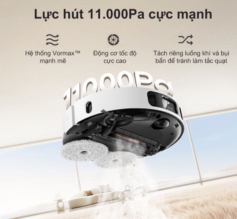 Lực hút Vormax™ 11000Pa làm sạch hiệu quả trên mọi bề mặt