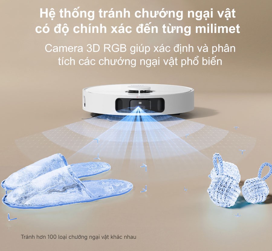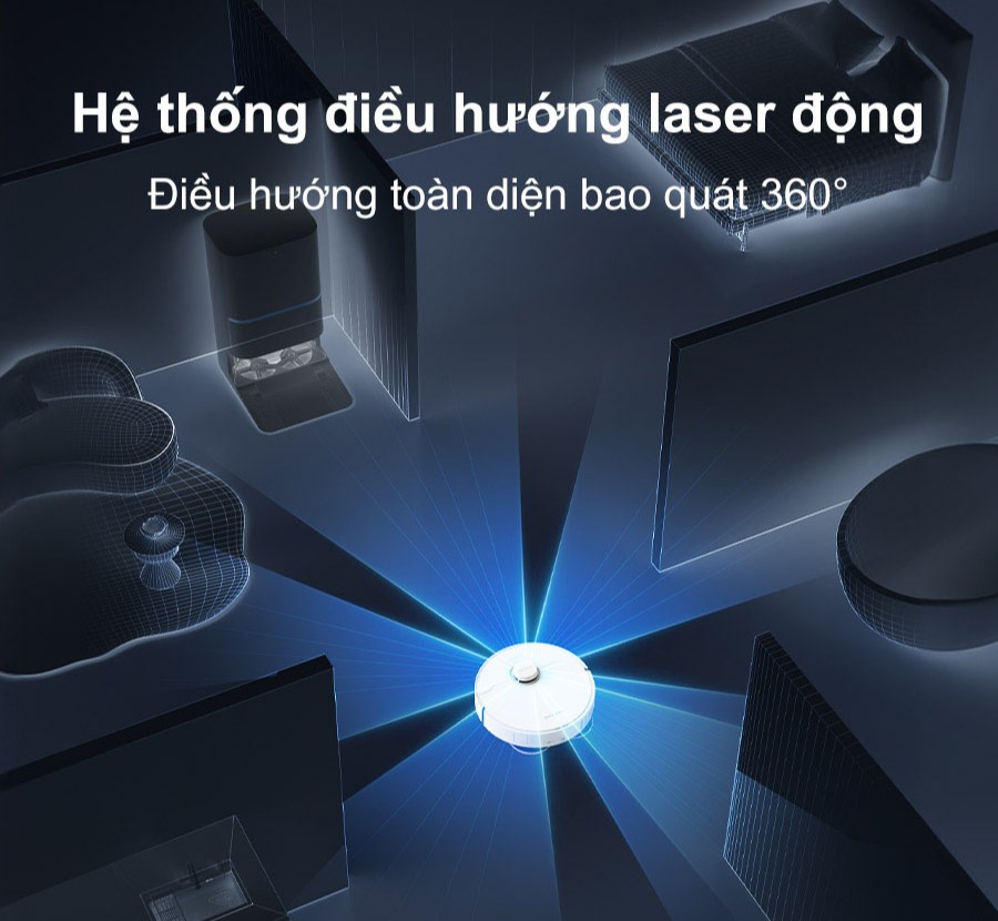 Dreame L30s Ultra được trang bị hệ thống điều hướng bằng laser động với tầm nhìn 360°, kết hợp với hình ảnh từ nhiều cảm biến laser để tạo thành bản đồ chi tiết. Hệ thống này không chỉ giúp robot điều hướng chính xác mà còn né tránh chướng ngại vật với độ chính xác từng milimet. Cảm biến 3D RGB phân tích và nhận diện các chướng ngại vật thông thường, trong khi camera hồng ngoại thu thập thông tin về độ sâu và khoảng cách, giúp lập kế hoạch lộ trình làm sạch chính xác, tránh va chạm trong suốt quá trình dọn dẹp.