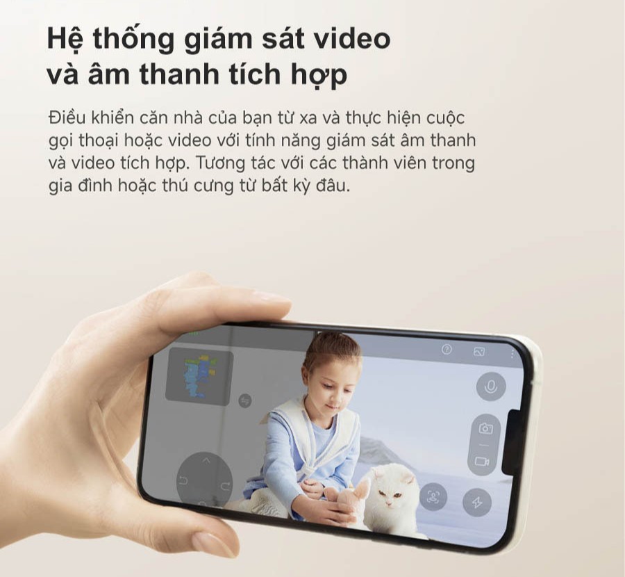 Đặc biệt, robot còn được trang bị hệ thống giám sát video và âm thanh tích hợp, cho phép bạn kiểm soát ngôi nhà từ xa và thực hiện các cuộc gọi video hoặc âm thanh. Bạn có thể tương tác với các thành viên trong gia đình hoặc thú cưng ở nhà từ bất kỳ đâu, đảm bảo sự an tâm và kết nối liên tục, đồng thời nâng cao trải nghiệm sử dụng thiết bị thông minh trong ngôi nhà của mình.