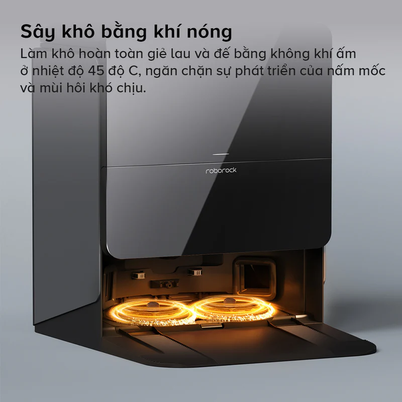 Trạm sạc của Roborock Saros 10R được trang bị công nghệ tự làm sạch bằng nước nóng, giải pháp làm sạch tối ưu với tính năng loại bỏ vi khuẩn. Với khả năng làm sạch bằng nước nóng 80°C, hệ thống có thể loại bỏ tới 99.9% vi khuẩn trên khăn lau, đồng thời dễ dàng xử lý các vết bẩn cứng đầu một cách nhanh chóng và hiệu quả. Điều này đảm bảo rằng sau mỗi lần dọn dẹp, robot của bạn luôn sẵn sàng hoạt động với mức vệ sinh cao nhất. Sau khi lau dọn, robot có khả năng tự làm khô khăn lau bằng cơ chế nhiệt 45°C với công nghệ thổi khô êm ái, ít tiếng ồn.
