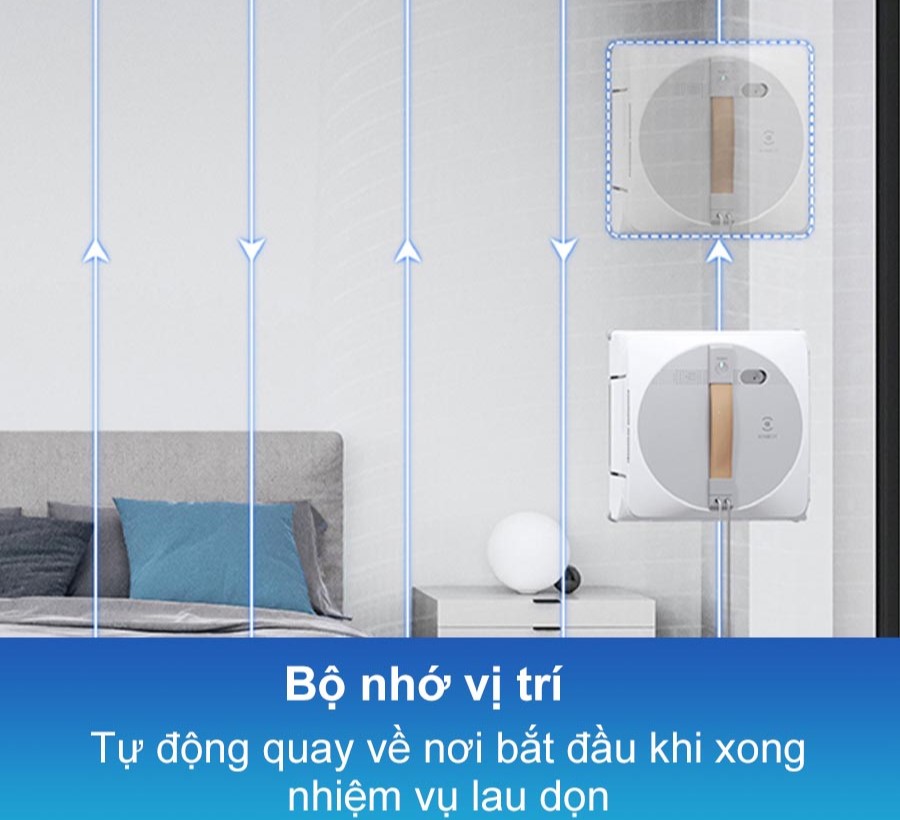 Sau khi hoàn thành việc lau kính, robot sẽ tự động quay trở về vị trí ban đầu, giúp bạn dễ dàng kiểm tra và cất giữ. Nếu bạn cần tạm dừng quá trình lau, robot sẽ ghi nhớ vị trí đã lau và tiếp tục làm sạch từ vị trí đó khi bạn khởi động lại.