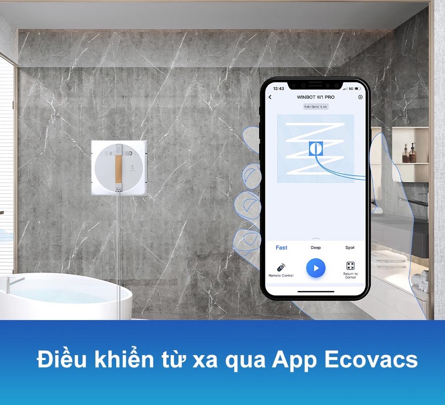 Ecovacs Winbot W1 Pro mang đến trải nghiệm lau kính thông minh và tiện lợi hơn bao giờ hết. Bạn có thể điều khiển robot từ xa bằng ứng dụng di động Ecovacs, cho phép bạn: