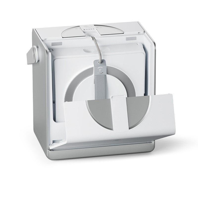 Ngoài ra, trạm sạc cũng cung cấp một khoang lưu trữ phụ cho W2 Pro và các phụ kiện làm sạch của nó. Nó cũng đi kèm với một tay cầm dễ dàng di chuyển đến các vị trí phù hợp.