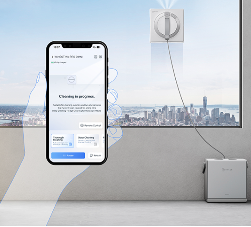 Ứng dụng Ecovacs Home dễ sử dụng đã được thiết lập sẵn với nhiều lựa chọn chế độ làm sạch, cùng với bộ điều khiển từ xa hoàn toàn mới. Việc làm sạch cửa sổ giờ đây trở nên dễ dàng hơn bao giờ hết.