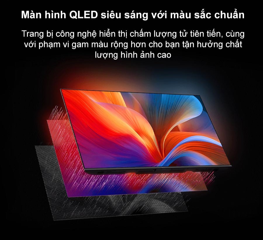 Tivi Redmi A Pro 65 inch được trang bị công nghệ hiển thị tiên tiến Quantum Dot (QLED), mang đến hiệu suất màu sắc cực kỳ ấn tượng và độ chi tiết cao. Với dải màu rộng hơn và khả năng hiển thị 1 tỷ màu, chiếc tivi Xiaomi này tái hiện màu sắc sống động như thật, giúp bạn thưởng thức chất lượng hình ảnh tuyệt đẹp ngay trong không gian nhà mình.