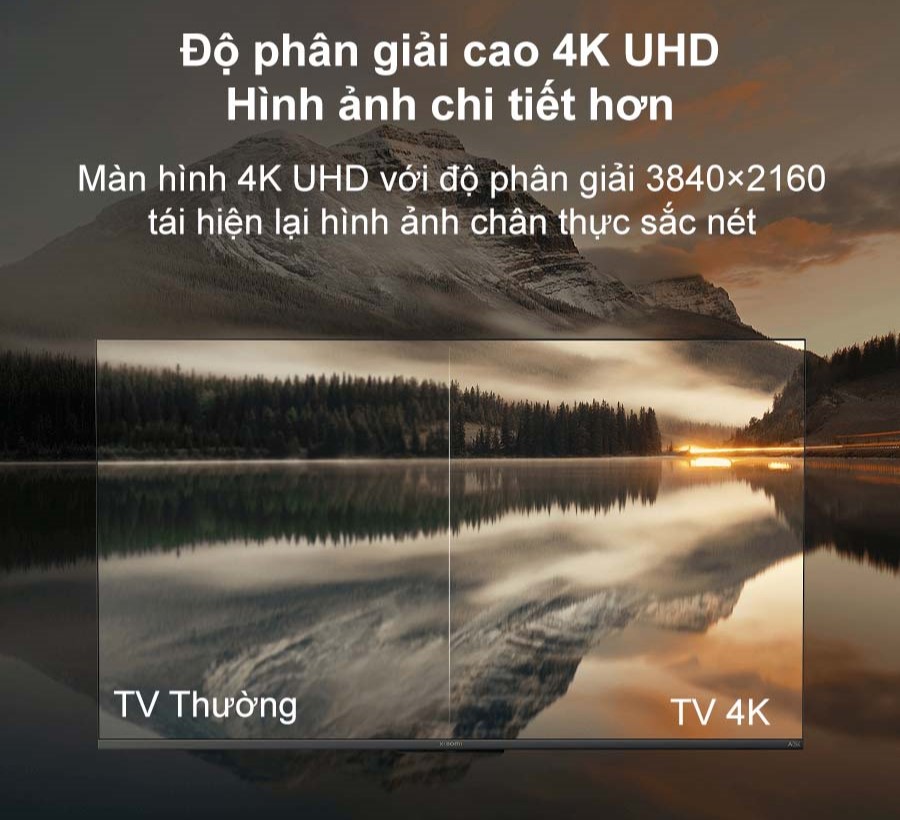 Với màn hình 4K Ultra HD có độ phân giải 3840 x 2160 pixel, tivi Redmi A Pro 65 inch hiển thị hình ảnh chi tiết và sắc nét. Từng chi tiết nhỏ nhất đều được tái hiện một cách tinh tế, mang lại trải nghiệm hình ảnh rõ ràng và sống động hơn bao giờ hết.