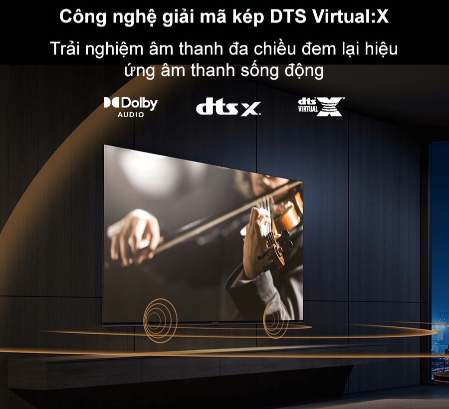 Nhưng sức mạnh của Redmi A Pro 65 inch 2025 không chỉ dừng lại ở đó. Công nghệ giải mã kép Dolby Audio™ và DTS:X cho phép tái tạo hiệu ứng âm thanh sống động, đa chiều. Thêm vào đó, DTS Virtual:X – công nghệ âm thanh ảo 3D tiên tiến – sẽ bao phủ bạn trong một trường âm thanh chân thực, như thể đang ngồi giữa rạp chiếu phim bom tấn.