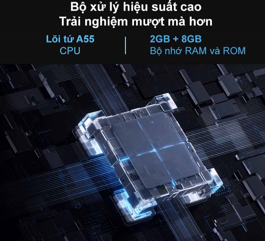 Bộ nhớ trong 8GB mang đến không gian lưu trữ thoải mái cho các ứng dụng yêu thích của bạn, từ Netflix, Youtube đến Spotify. Đồng thời, vi xử lý A55 mạnh mẽ kết hợp với chip đồ họa Mali G52 GPU giúp xử lý hình ảnh nhanh chóng, mang đến trải nghiệm xem mượt mà, sắc nét. Bạn có thể tạm biệt hiện tượng giật lag, load chậm, thỏa sức đắm chìm vào thế giới giải trí sống động. Đây chính là chiếc TV thông minh lý tưởng cho những ai yêu cầu trải nghiệm giải trí mượt mà, trọn vẹn.