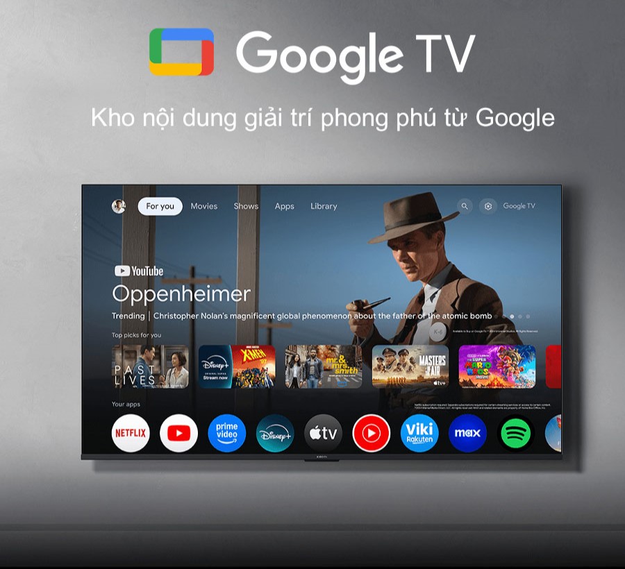 Với nền tảng Google TV™ thông minh, chiếc TV này trở thành trung tâm giải trí đích thực cho cả gia đình. Hệ thống sẽ tổng hợp nội dung từ hơn 10.000 ứng dụng và dịch vụ đăng ký của bạn – từ Netflix, YouTube, Disney+, đến hàng trăm kênh truyền hình miễn phí – sau đó sắp xếp và đề xuất nội dung theo sở thích cá nhân. Nhờ vào khả năng đề xuất thông minh và hồ sơ người dùng riêng biệt, mỗi thành viên trong gia đình đều có thể tận hưởng nội dung phù hợp nhất với mình, từ trẻ nhỏ đến người lớn tuổi.