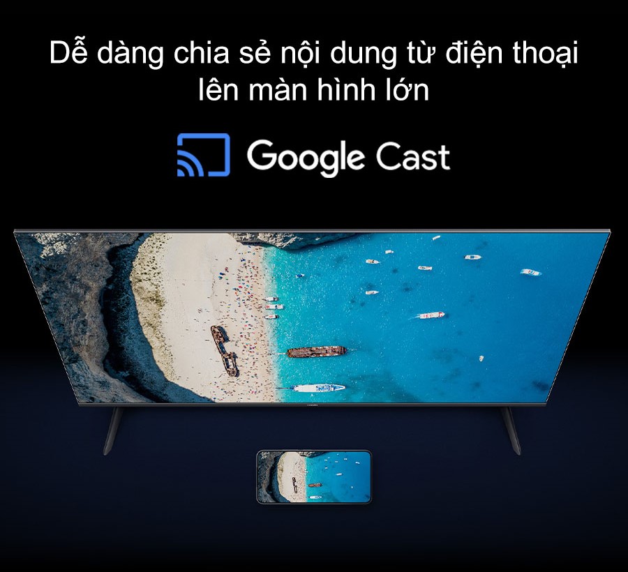 Với tính năng Google Cast và Apple AirPlay tích hợp sẵn, Tivi Xiaomi 43 inch A Google TV 2026 cho phép bạn dễ dàng truyền tải phim ảnh, chương trình yêu thích, trò chơi, nhạc và cả hình ảnh từ điện thoại thông minh, máy tính bảng hoặc máy tính cá nhân lên màn hình TV chỉ trong vài thao tác.