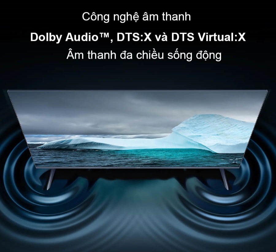 Công nghệ Dolby Audio mang đến âm thanh rõ ràng, sống động, trong khi DTS:X tạo hiệu ứng âm thanh ba chiều giúp người xem cảm nhận được chiều sâu và không gian thực tế. Đặc biệt, DTS Virtual:X giả lập âm thanh vòm 360 độ mà không cần đến dàn loa phức tạp, tái hiện không gian âm thanh lan tỏa từ mọi hướng.