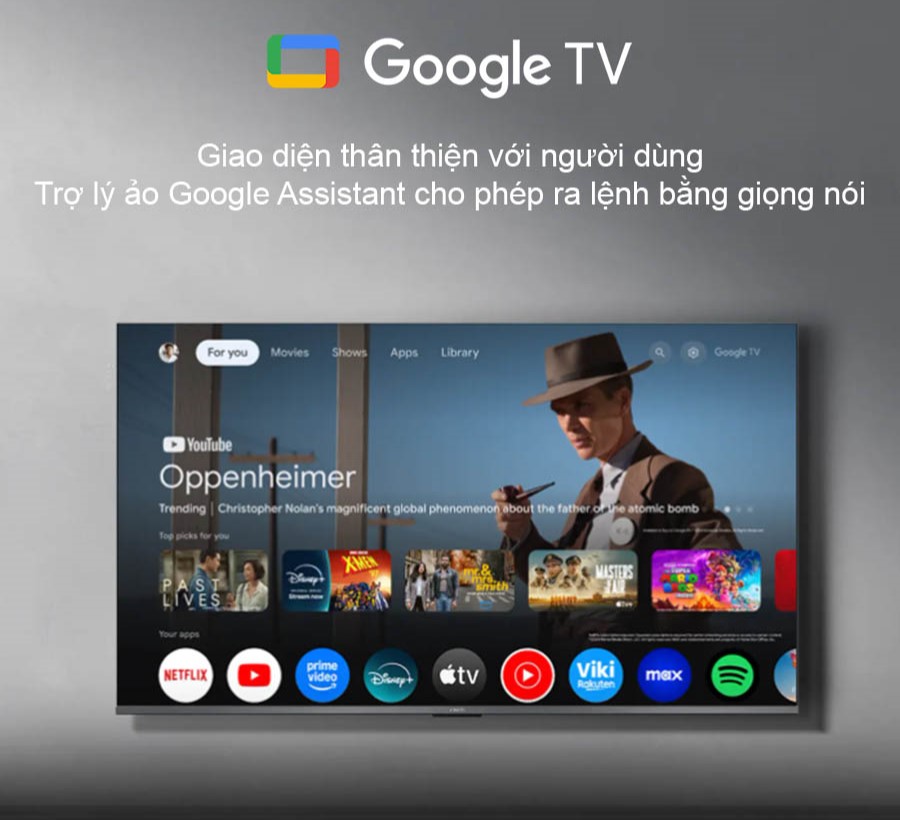 Kho ứng dụng phong phú được cài sẵn bao gồm Netflix, YouTube, Prime Video cùng nhiều nền tảng giải trí khác, cho phép bạn tận hưởng thế giới nội dung không giới hạn chỉ bằng một nút bấm trên điều khiển từ xa Bluetooth hiện đại.