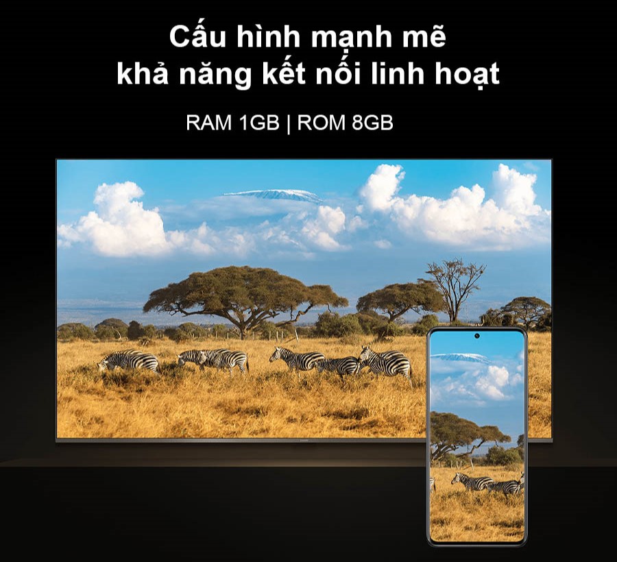 Tivi hoạt động mượt mà nhờ cấu hình hợp lý gồm bộ xử lý lõi tứ Cortex-A53, RAM 1GB và bộ nhớ trong 8GB, đáp ứng tốt nhu cầu xem phim, nghe nhạc, chơi game nhẹ và chạy ứng dụng phổ biến mà không lo giật lag hay đứng hình.