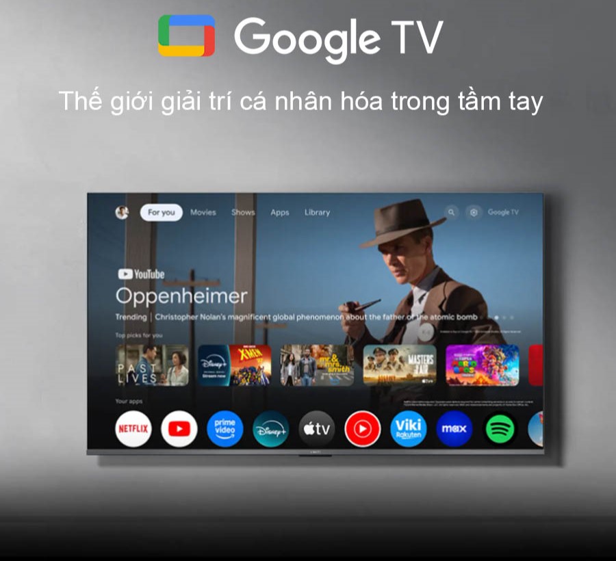 Với Google TV™, mọi nội dung giải trí yêu thích của bạn từ phim ảnh, chương trình truyền hình đến các ứng dụng đều được tập hợp và tổ chức một cách thông minh, tiện lợi. Khám phá thêm các gợi ý mới phù hợp với sở thích cá nhân từ hơn 10.000 ứng dụng và hàng trăm kênh miễn phí. Mỗi thành viên trong gia đình đều dễ dàng tạo hồ sơ cá nhân riêng, tận hưởng trải nghiệm tùy biến, cá nhân hóa theo từng sở thích riêng biệt.